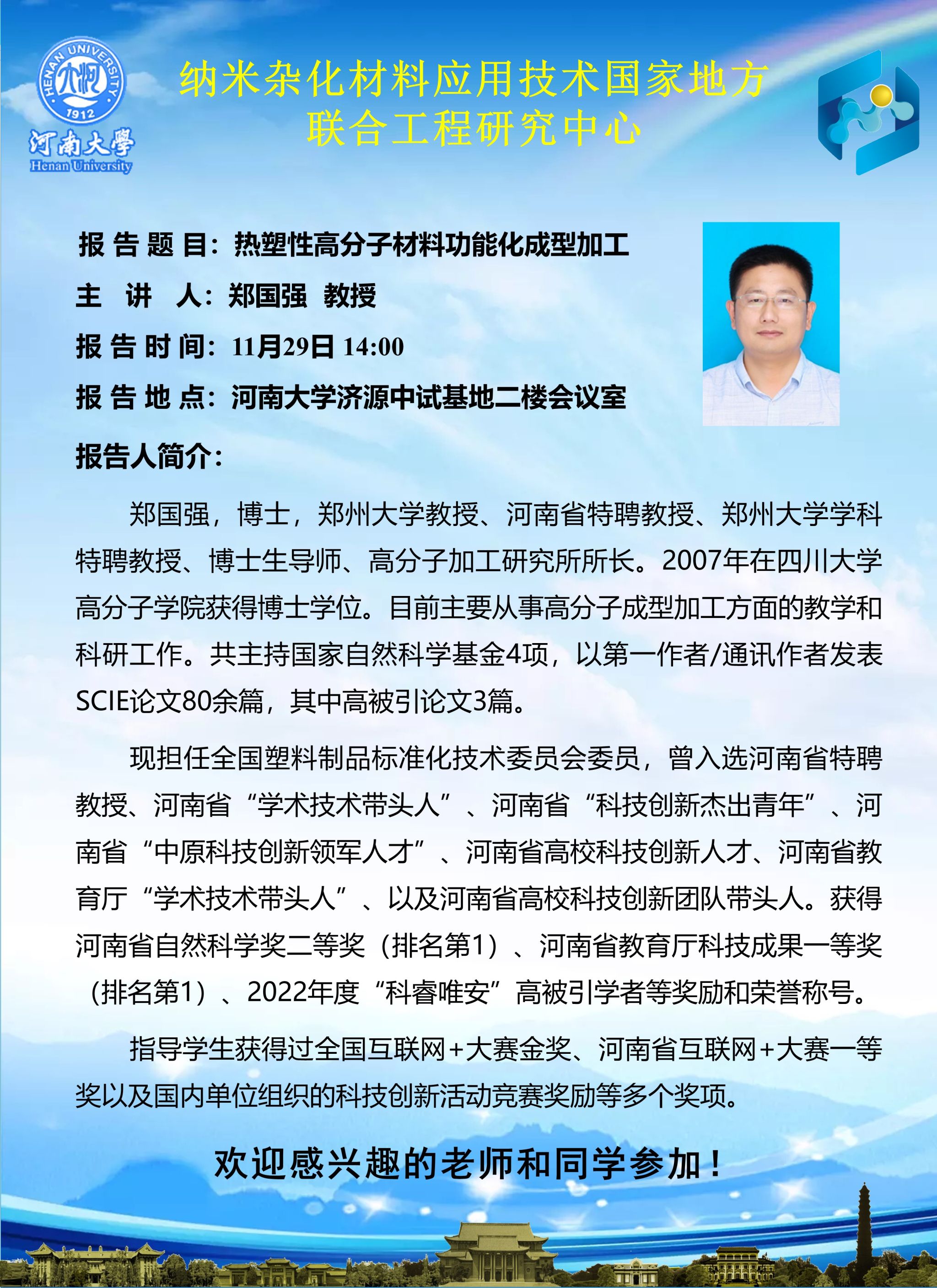 郑国强:热塑性高分子材料功能化成型加工(时间:11月29日)