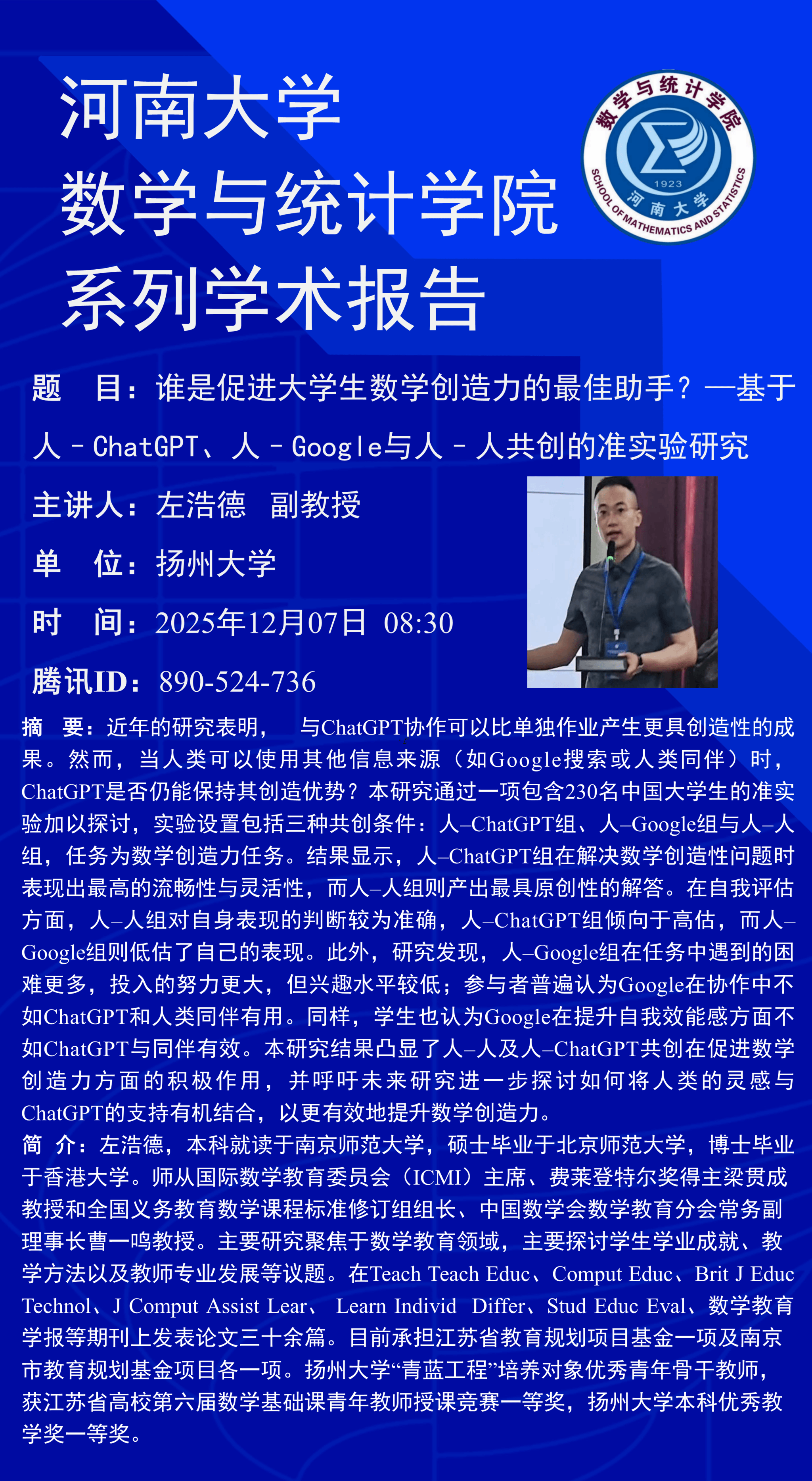 左浩德 :谁是促进大学生数学创造力的最佳助手?——基于人–ChatGPT、人–Google与人–人共创的准实验研究(时间:12月7日)