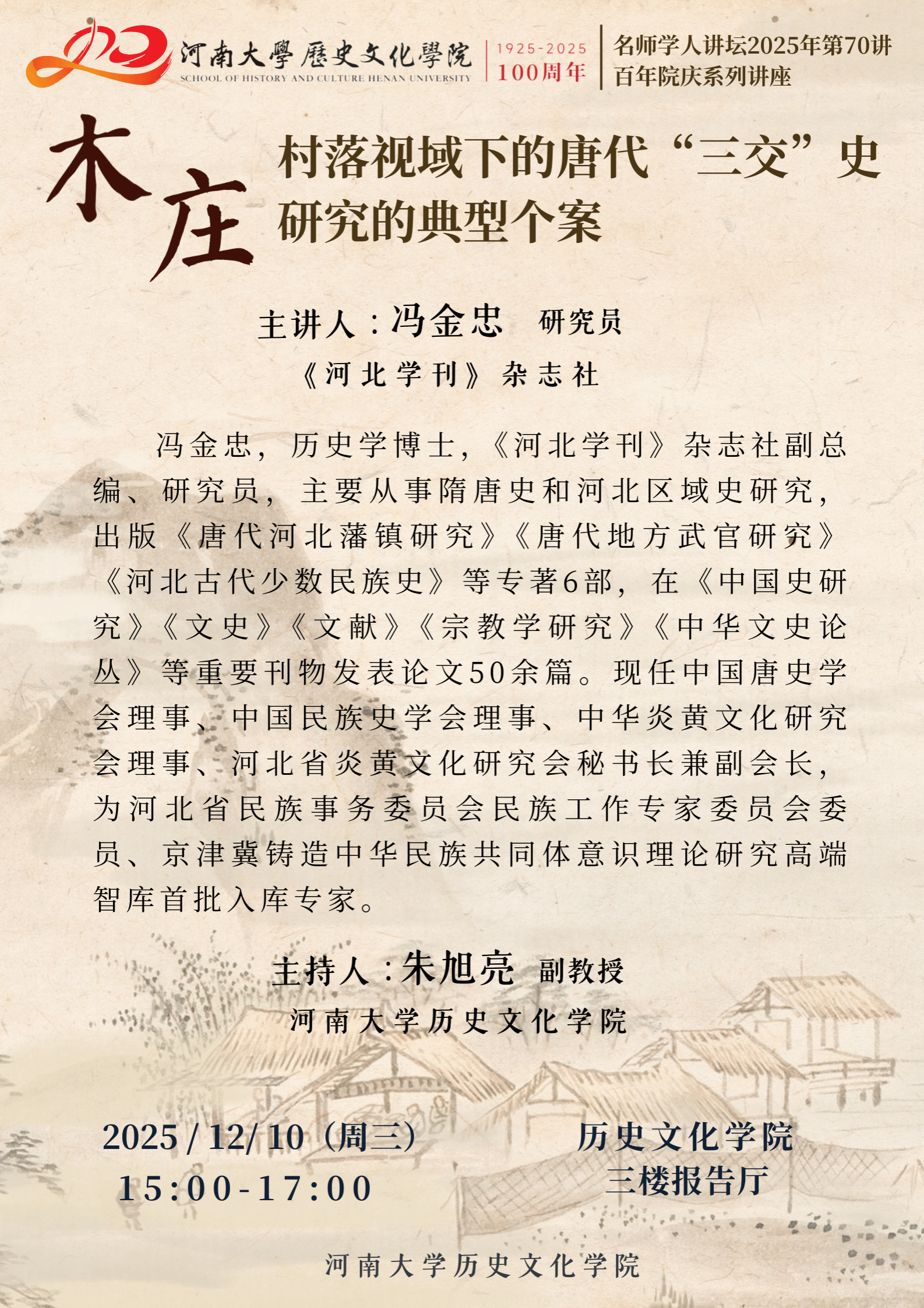 冯金忠 :木庄村落视域下的唐代"三交"史研究的典型个案(时间:12.10)