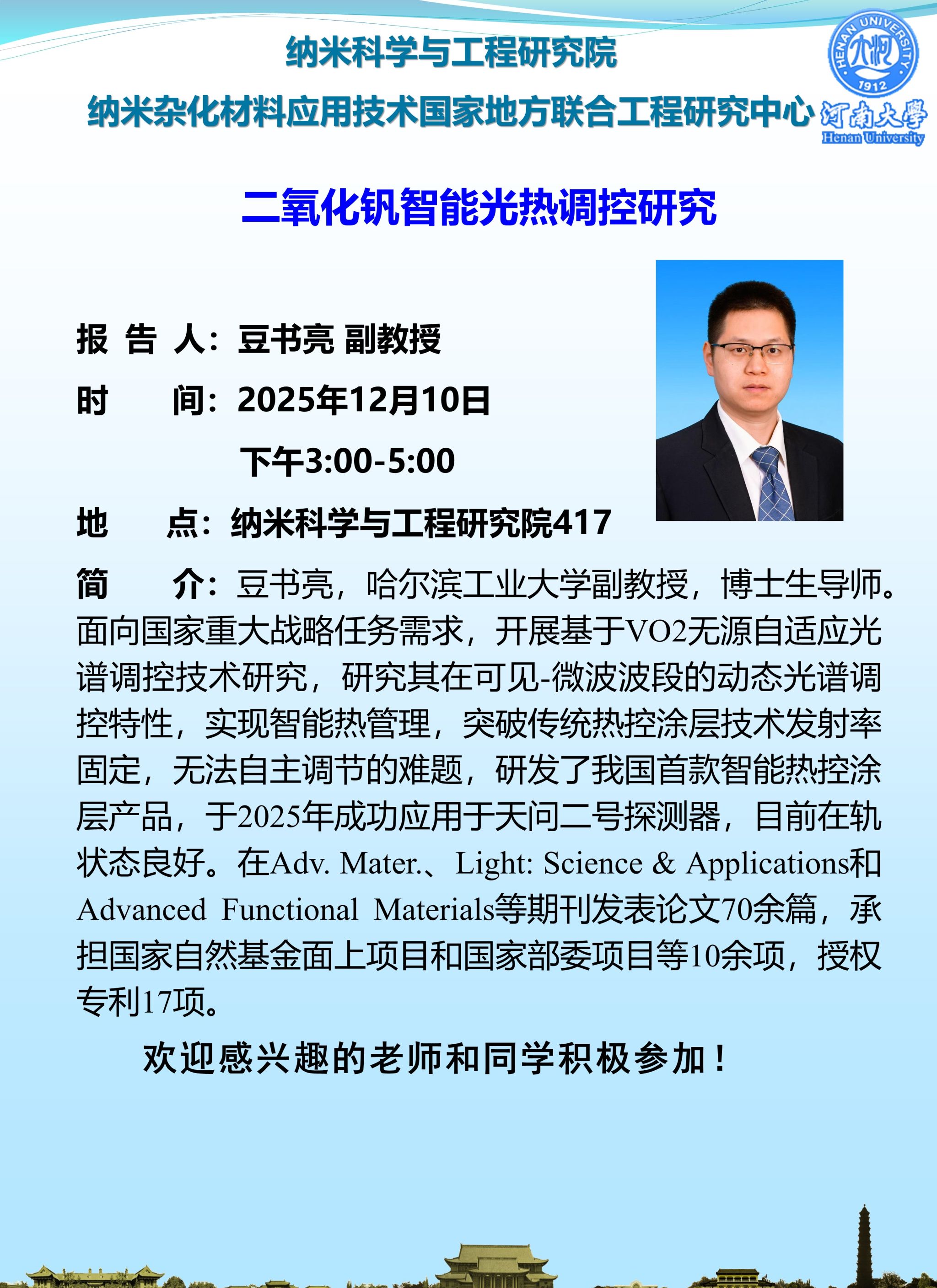 豆书亮:二氧化钒智能光热调控研究(时间:12月10日)