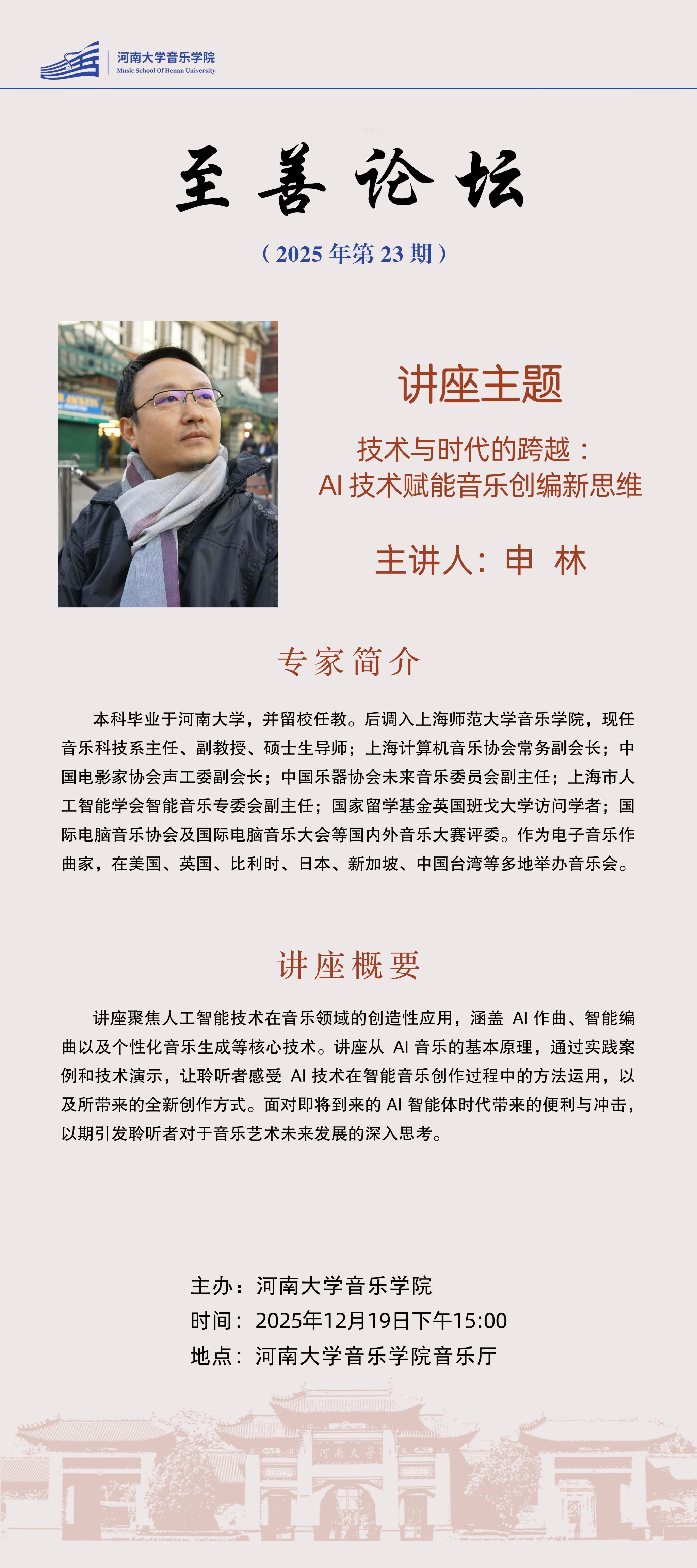 申林:技术与时代的跨越:AI技术赋能音乐创编新思维(时间:12.19)