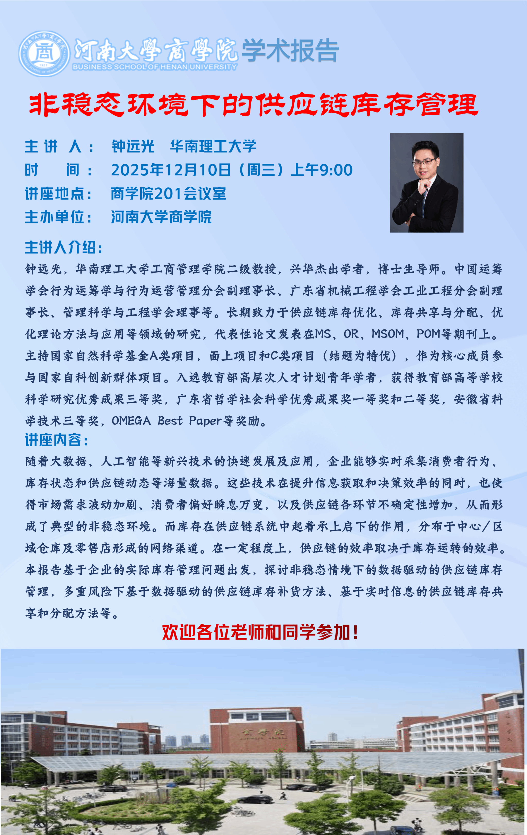 钟远光:非稳态环境下的供应链库存管理(时间:12.10)