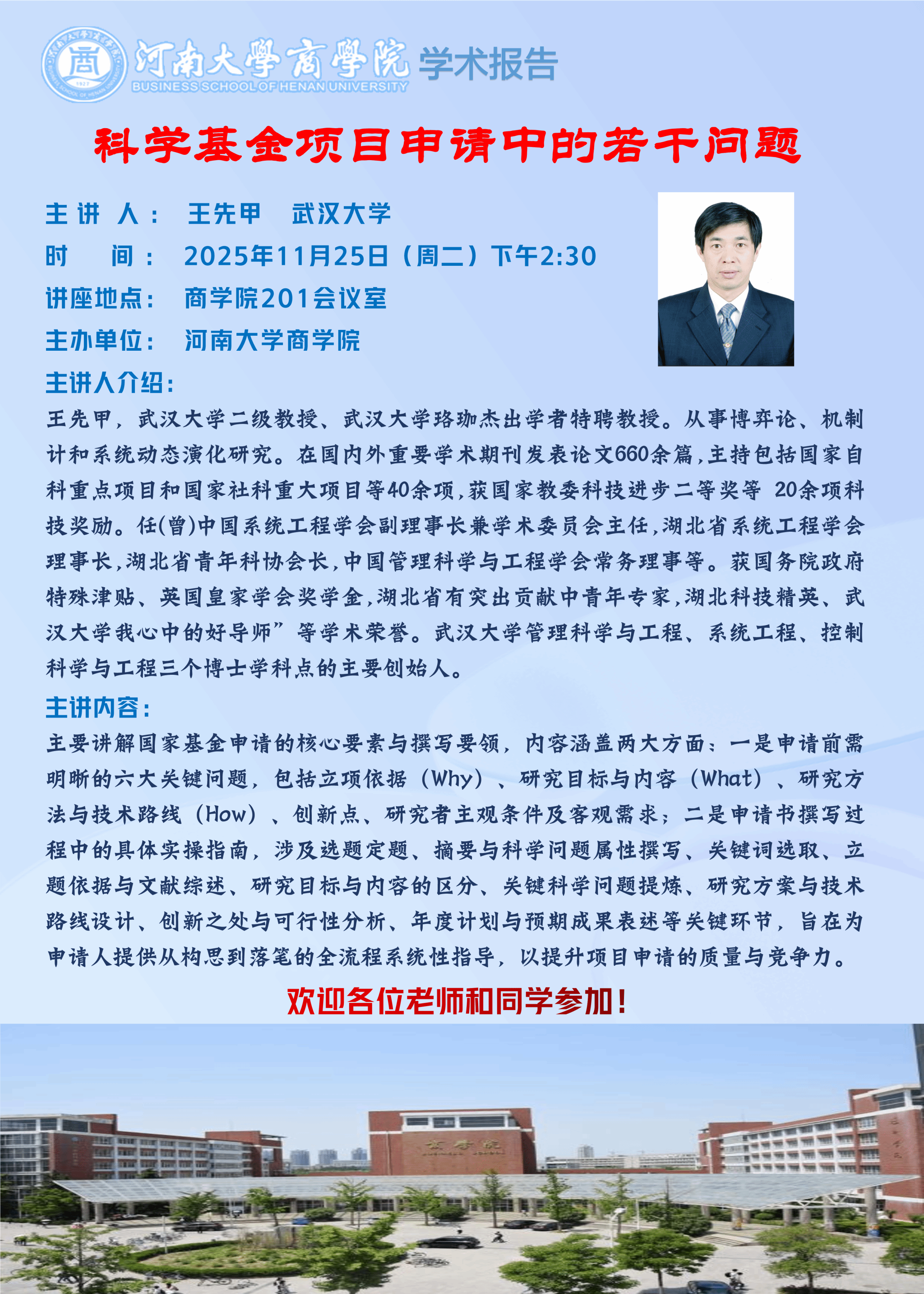 王先甲:科学基金项目申请中的若干问题(时间:11.25)