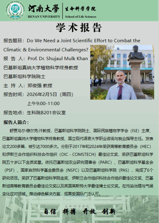 Shujaul Mulk Khan:Do We Need a Joint Scientific Effort to Combat the Climatic & Environmental Challenges?(时间:2月5日)