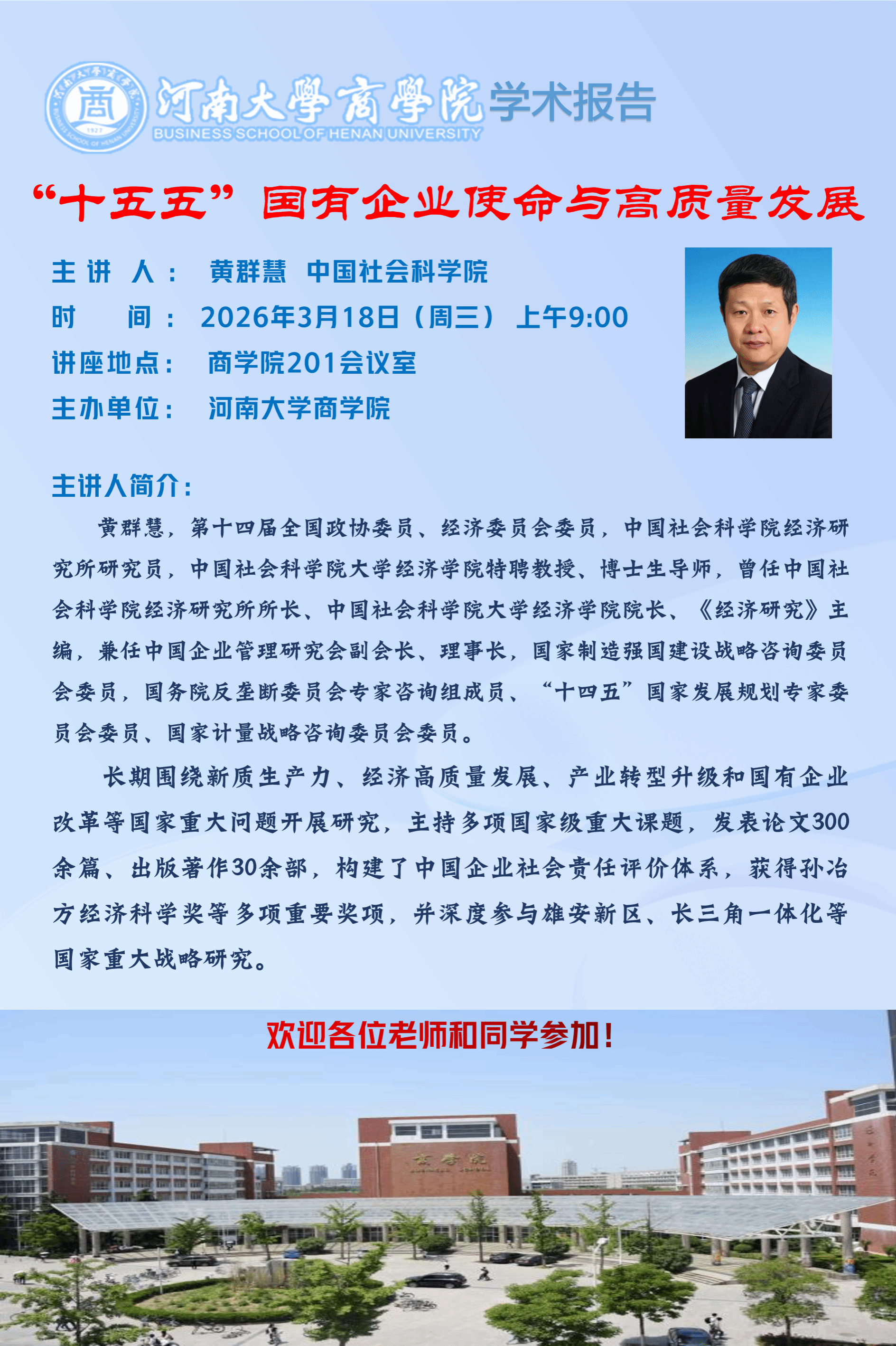 黄群慧:“十五五”国有企业使命与高质量发展(时间:3.18)