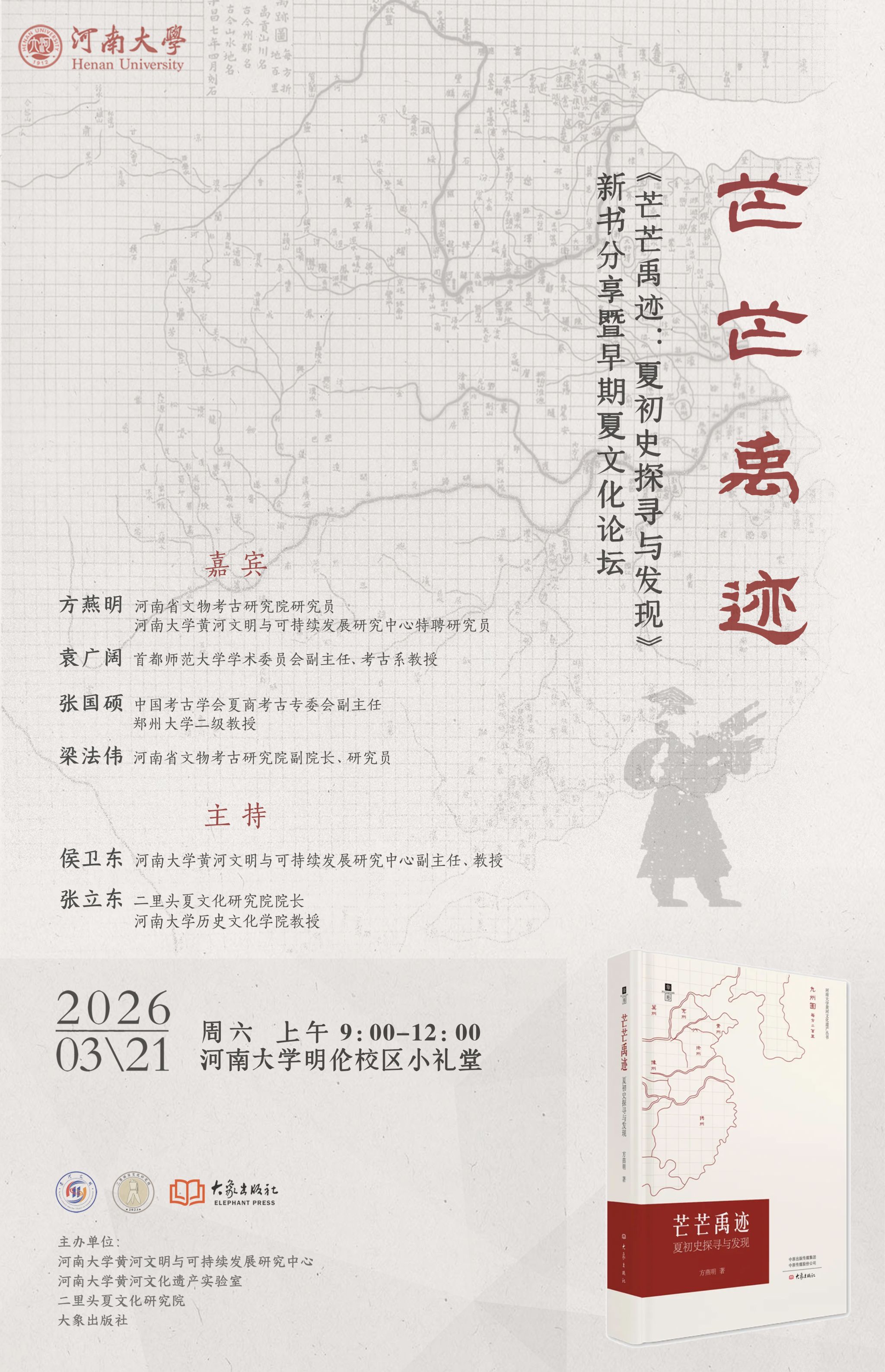 《芒芒禹迹:夏初史探寻与发现》新书分享暨早期夏文化论坛(时间:3.21)