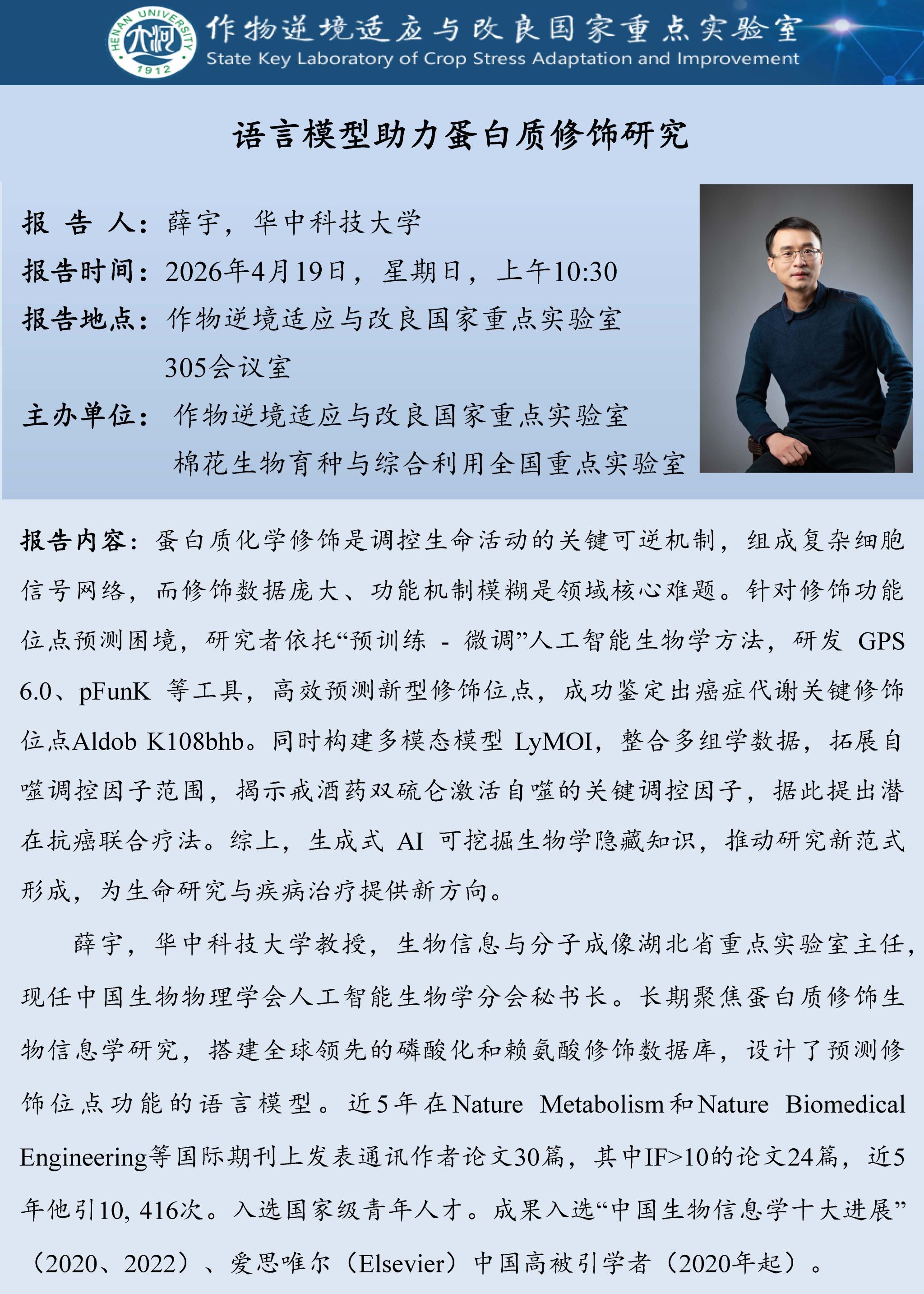 薛宇:语言模型助力蛋白质修饰研究(时间:4月19日)