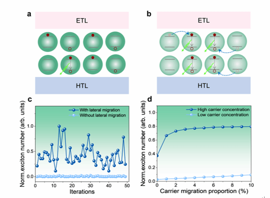 图1 通过载流子扩散加速量子点发光二极管中的电致发光