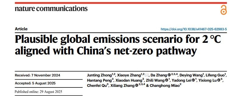 近期,中法两国发表关于合作应对全球气候和环境挑战的联合声明,再次重申《巴黎协定》将全球平均气温升幅控制在工业化前水平以上低于2℃的核心目标。在这一关乎人类共同未来的关键进程中,我校“应对气候变化和碳中和实验室”张小曳院士团队联合清华大学团队在国际顶级学术期刊《Nature Communications》上发表题为“Plausible global emissions scenario for 2°C aligned with China’s net-zero pathway”的研究成果。该研究构建了一个与我国碳中和进程紧密协同的全球减排与温控情景,为推动实现《巴黎协定》温控目标提供了新的科学支撑。