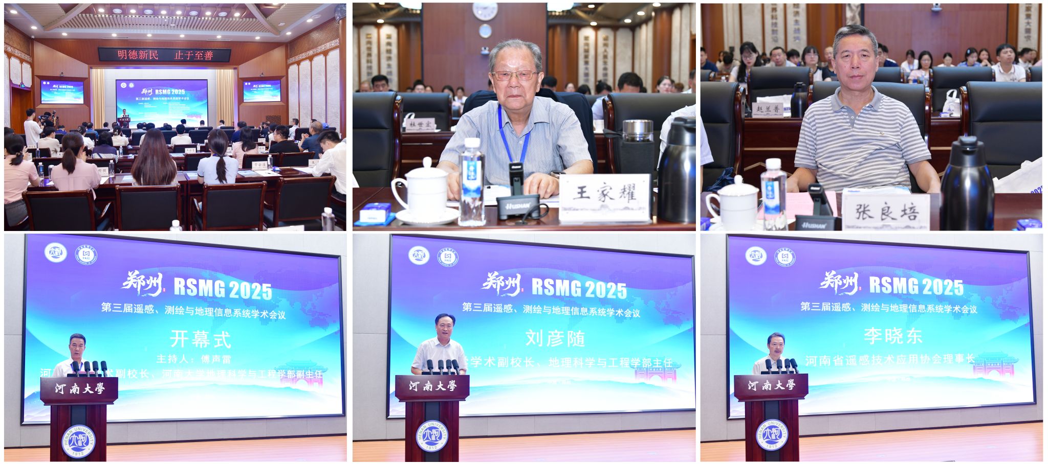 7月11日至13日,第三届遥感、测绘与地理信息系统学术会议(RSMG 2025)在我校郑州龙子湖校区召开。本次会议由河南大学、河南省科学院、河南省遥感技术应用协会联合主办,空间基准全国重点实验室、河南大学地理科学与工程学部、河南省科学院空天信息研究所承办。中国工程院院士王家耀,学术副校长、地理科学与工程学部主任刘彦随,学术副校长、地理科学与工程学部副主任傅声雷,河南省科学院空天信息研究所所长张良培,河南省遥感技术应用协会理事长李晓东等出席会议。来自中国科学院、武汉大学、国防科技大学、西北工业大学、同济大学、航天科工空间工程发展有限公司等高校、院所、企业的近200位专家学者及师生代表参加会议。