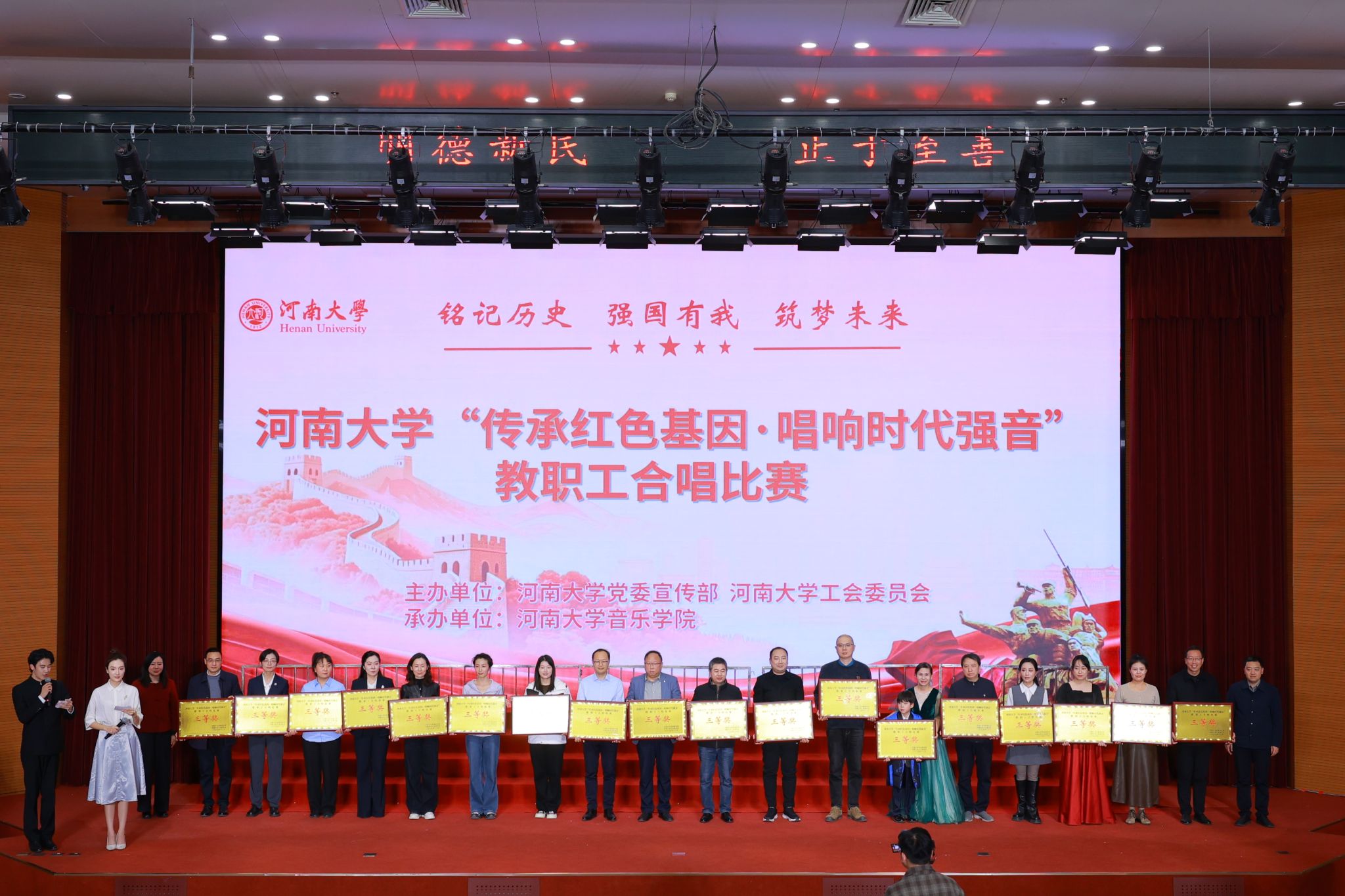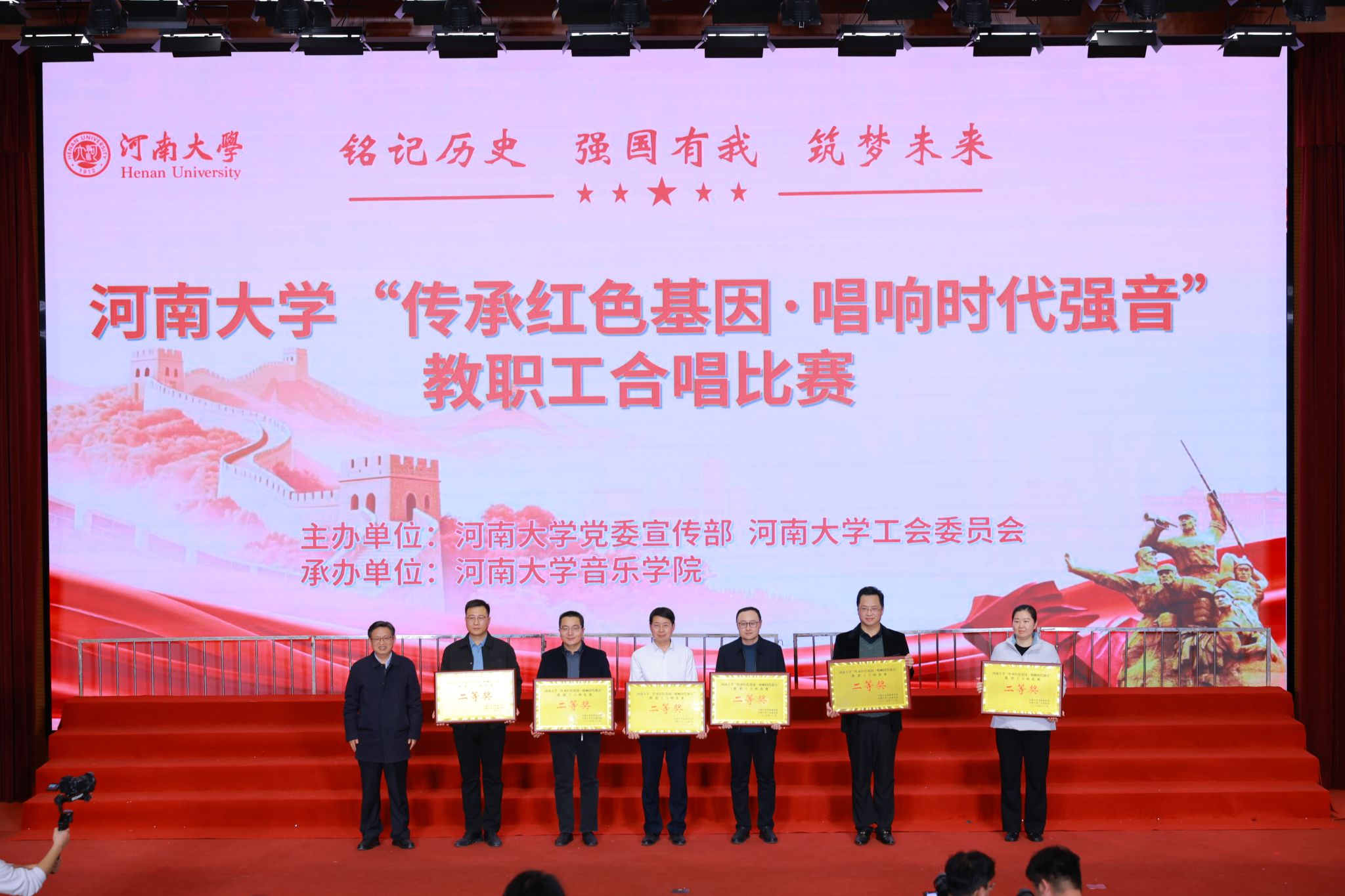 经过激烈角逐,最终评选出各类奖项。河南戏剧学院、河南大学附属中学荣获特等奖,哲学与公共管理学院、机关、生命科学学院获得一等奖,地理科学学院等6个单位获得二等奖,河南大学出版社等18个单位获得三等奖。校党委副书记李平,校党委副书记、工会主席杨萌芽,校纪委书记赵晓军等分别为获奖队伍颁奖。