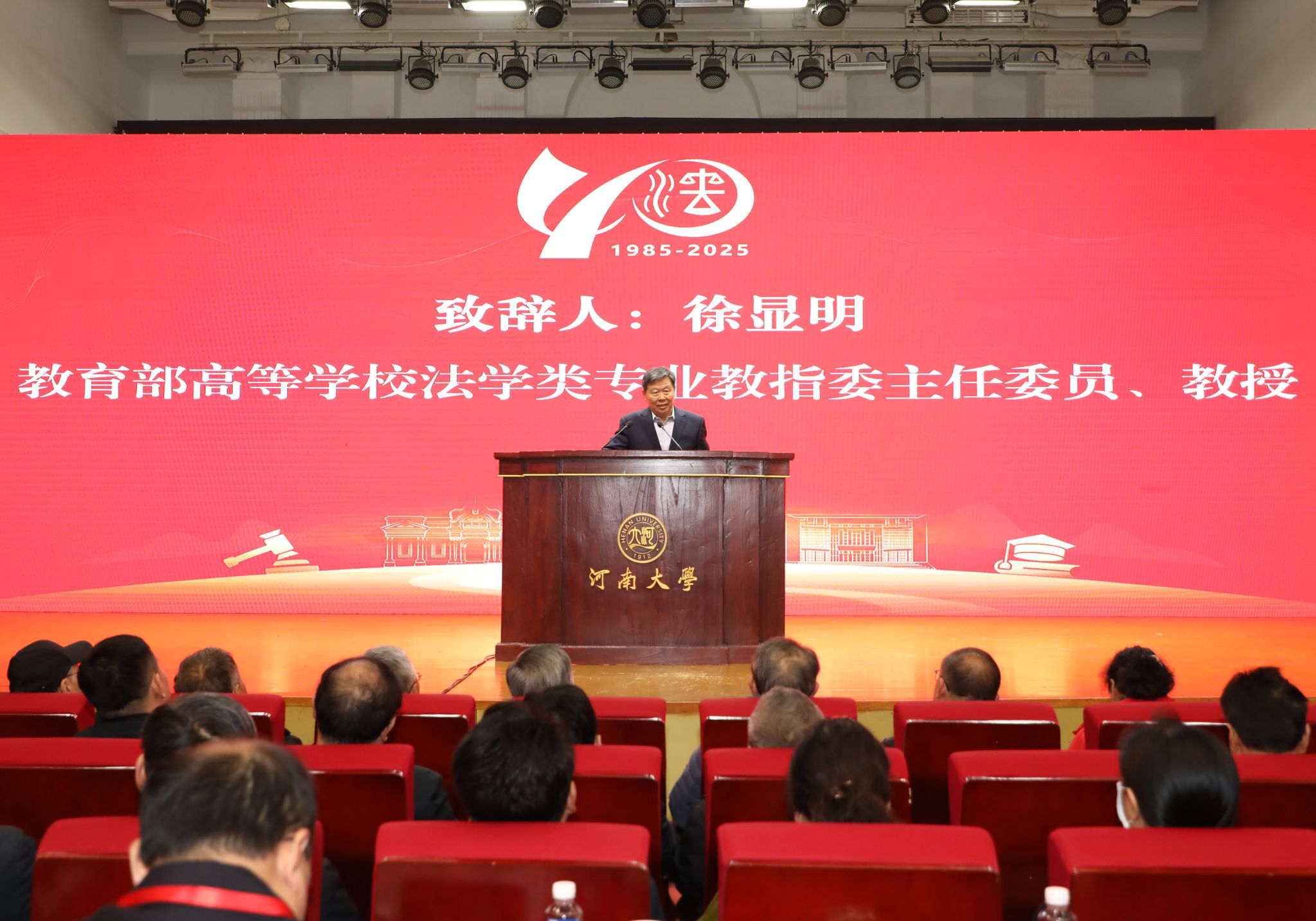 徐显明对河南大学法学学科恢复重建四十周年表示祝贺,阐释一流大学法学院的标准,指出法学学科建设的四项要素、法学教育的五大功能,为河南大学法学学科发展提供了有力指导。