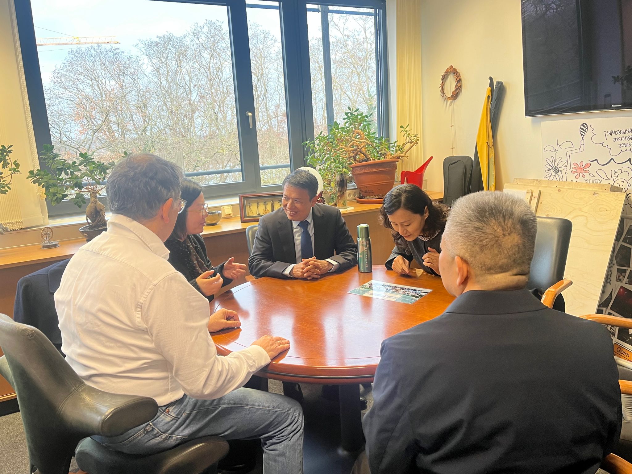在德国,代表团先后访问了德国安哈尔特应用技术大学、马普胶体界面研究所。在德国安哈尔特应用技术大学,季波与该校副校长Uta Seewald-Heeg、副校长Lothar Koppers等进行深入会谈。双方回顾了长达二十年的合作历程与成效,并就进一步深化战略合作、推动合作办学项目高质量发展达成一致意见。未来两校将进一步优化合作模式,加强优质教育资源对接,拓展师生交流渠道,持续提升国际化人才培养水平。期间,季波一行还看望了在该校学习的河大学子,鼓励他们勤奋学习、成长成才。