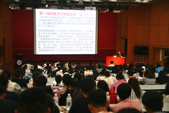 5月6日下午,“至善大讲堂”第十讲在金明校区计算机大楼二楼报告厅开讲。北京大学原党委书记、博士生导师闵维方教授作了题为《双一流建设的战略思考与北京大学的实践》的报告。校领导、职能部门负责人、研究生培养单位党政负责人及分管领导、研究生院全体成员、金明校区部分研究生参加了报告会。报告会由校长娄源功主持。