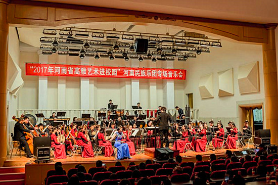 高雅艺术作为人类文明在发展过程中积淀的优秀经典,有着深刻的审美内涵和深远影响,此次“高雅艺术进校园”河南民族乐团专场音乐会,对于提高我校师生审美素养、丰富校园文化生活、拓展艺术教育平台能够起到极大的推进作用。