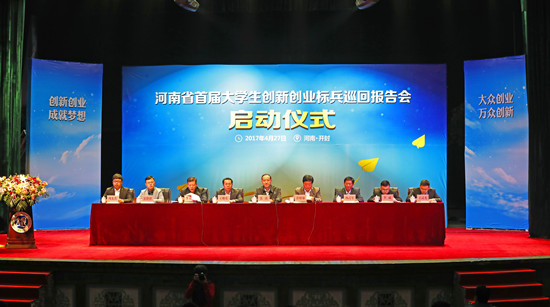 4月27日上午,河南省首届大学生创新创业标兵巡回报告启动仪式暨首场报告会在明伦校区大礼堂隆重举行。河南省教育厅副巡视员张涛,教育厅学生处处长王继东、调研员杨占军,河南大学党委常委、副校长许绍康出席报告会。来自河南大学、河南大学民生学院、黄河水利职业技术学院、开封大学、开封文化艺术职业学院5所高校的1200余名大学生代表聆听了报告。报告会由省教育厅学生处副处长李玉伟主持。
