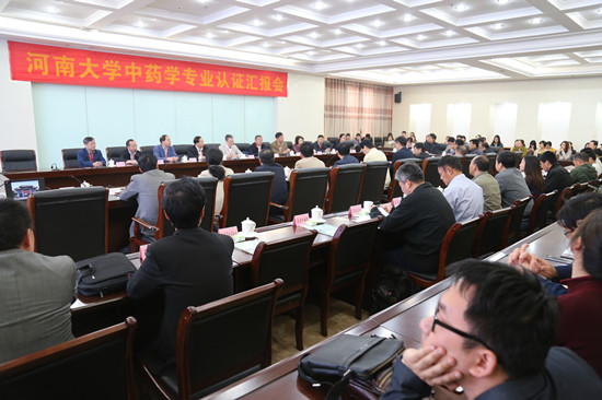 4月26号上午,河南大学中药学专业认证开幕式暨汇报会在金明校区图书馆三楼会议室举行。认证专家组成员,校领导娄源功、刘志军,学校相关职能部门负责人,药学院领导班子全体成员、各教研室主任、教师代表和中药学专业学生代表参加了会议。大会分为两个阶段进行,第一阶段开幕式由校党委常委、副校长刘先省主持。