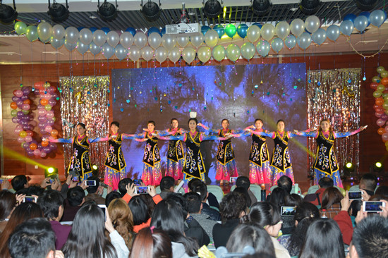 欢快的麦西来甫乐曲响起,火红的爱特莱斯舞裙翻飞。阿达西们用婀娜的舞姿瞬间点燃了观众们的激情,拉开了晚会的序幕。乐声悠扬,华灯闪烁,帅气新疆小伙的吉他弹唱用音乐带领观众们领略了新疆的独特风情;哈萨克斯坦小伙带来了地道的冬不拉弹奏,跳跃的手指、铿锵的音符让观众感受到了独特的民族魅力;观众们也从Fashion show鲜艳的服装中品味到中华民族灿烂的服饰文化;一招一式,一拳一脚,体育学院的同学们用武术传递着中国功夫的刚劲与绵柔;艺术学院优雅柔美的水袖舞和基础医学院动感四射的爵士舞引起了观众们的喝彩连连;16级辅导员金慧老师用胡琴演奏的《凉凉》将观众带入桃花灼灼、片片芳菲的唯美境界,更使晚会达到高潮。一曲《爱我中华》唱出了各民族人民的深厚情谊,在余音缭绕中晚会闭幕。