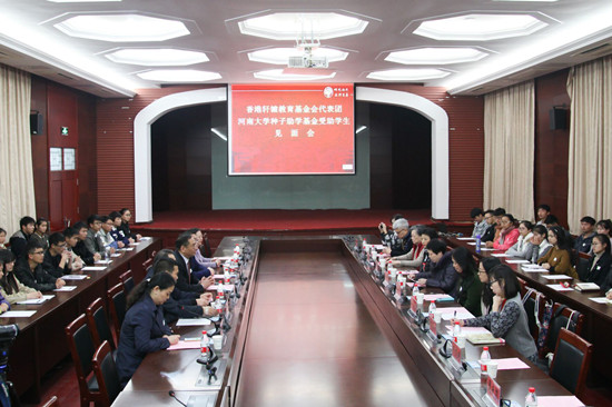 3月11日上午,香港轩辕教育基金会代表团与河南大学种子助学基金受助学生见面会在明伦校区小礼堂举行。香港轩辕教育基金会副主席孔敏庄女士等10名代表,开封市外侨办,河南大学副校长孙君健,教育发展基金会、统战部、学生处等相关部门负责人和第二期受助学生参加了会议。会议由学生处副处长常凤香主持。