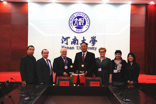 孙君健与茹可·伊万诺维奇·亚历山大进行了亲切的交谈。孙君健向客人简要介绍了河南大学的办学历史和与白俄罗斯高校间的交流合作情况。他说,河南大学近年来与白俄罗斯高校间教育交流频繁,先后与白俄罗斯国立大学、国立体育大学等高校开展教师互访、学生培养与课程合作等各类交流合作项目。白师大是白俄罗斯一所知名的师范类院校,与河南大学在学科设置、人才培养等方面有许多共同点,相信双方在教育学术交流与合作领域具有广泛的合作空间和发展潜力。