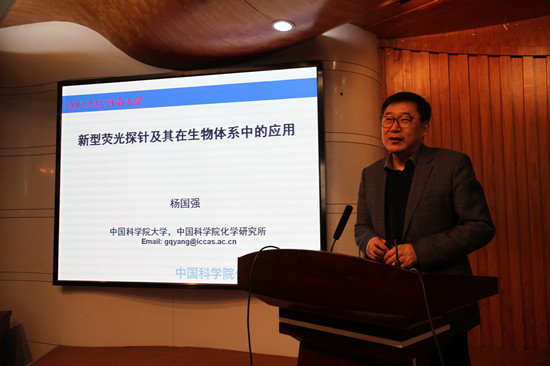 2017年2月22日下午,中国科学院大学副校长杨国强在金明校区二楼报告厅为我校相关专业研究生导师和学生做了题为《新型荧光探针及其在生物体系中的应用》的学术报告。报告会由我校研究生院常务副院长苗琛主持。