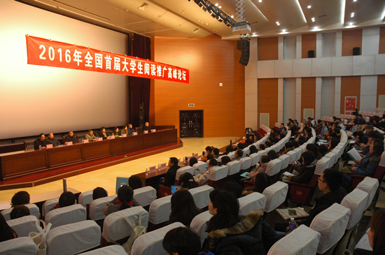 2016年11月25日上午,全国首届大学生阅读推广高峰论坛在我校金明校区图书馆一楼报告厅召开。本次论坛由中国图书馆学会阅读推广委员会主办,中国图书馆学会阅读推广委员会大学生阅读推广专业委员会和我校图书馆共同承办。来自全国22个省市的230余位专家学者齐聚八朝古都开封,深入交流大学生阅读推广经验,推动大学生阅读推广工作的可持续发展。开幕式由我校图书馆党总支书记郭鸿昌主持。