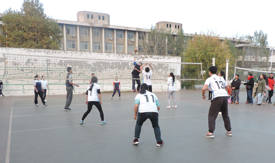 当天下午金明校区共有两个场地进行比赛,其中第一场比赛由计算机与信息工程学院对阵基础医学院。裁判员一声哨响之后,基础医学院首次发球,面对医学院队的猛烈攻势,计算机与信息工程学院队员沉着应对,成功抵挡住对方的进攻。双方你来我往时,现场观众兴奋地喊道:“快,垫球,扣球了!”经过激烈角逐,基础医学院取得首局胜利。第二局,基础医学院依然维持着第一场时的进攻状态,并一度将比分拉开。计算机与信息工程学院球员奋起直追,迅速赶上并将比分反超。基础医学院不甘示弱,11号主力球员艾力·扎提跳起后,张开双臂,右手突然将球拍向对方防守空隙,猛烈的扣球动作使全场沸腾了。随后医学院连得三分,将比分拉近。计算机与信息工程学院9号球员一个拦网扣球,成功扳回一分,让比赛进入白热化阶段。场边观众们大声呐喊,为球员们鼓劲加油。最终,计算机学院以0:2负于基础医学院队。来自新疆吐鲁番的艾力·扎提说道:“我在老家的时候就喜欢打排球,有排球比赛的经验,对本次比赛充满信心。今天取得首场胜利,感到非常荣幸。”与此同时,金明校区经济学院经世济民队、数学院数学分析队也击败对手,土木建筑学院与国际教育学院暂时打成平手,第二日将继续再战。明伦校区艺术学院、欧亚国际学院、马克思主义学院均以2:0战胜对手,国际汉学院1:0暂时领先黄河文明队,第二日双方将决定胜负。
