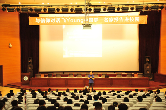 9月22日下午,由共青团中央、中国电信集团公司主办,共青团河南省委员会、中国电信河南分公司、青年豫商领袖成长论坛组委会承办,我校校团委、三人行公司、飞碟品牌营销机构协办的“与信仰对话 飞young中国梦——名家报告进校园”系列讲座在我校金明校区图书馆一楼报告厅举办。校团委负责人和全校500余名师生共同参加了本次活动。