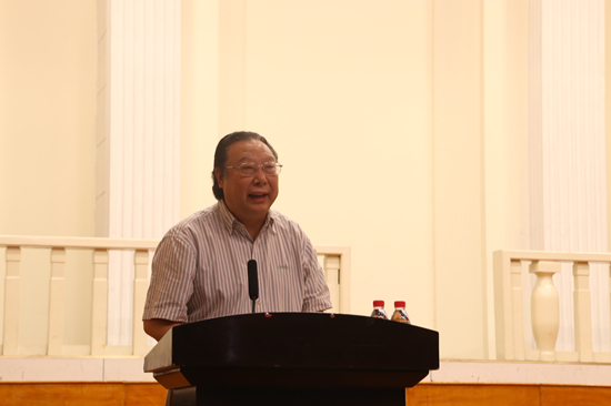 央视“百家讲坛”资深主讲人王立群给客人带来了一场题为“关于历史教育的几点思考”的文化讲座。他从家喻户晓的简单成语解读入题,引经据典,用了近两个小时时间从历史教育的重要性、中国历史教育的特点、历史能否常讲常新等几个方面谈了自己独到的见解。港澳客人对王立群教授的讲座表示一致欢迎,并在讲座结束时向王立群教授赠送纪念品留念。
