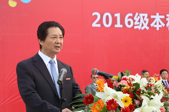 “这注定是一个令人难忘的时刻,它标志着你正式成为百年名校河南大学的新成员,标志着你已经结束了从幼儿园,到高中这十几年酸甜苦辣的学习,进入到了另一种苦辣酸甜的生活……也因此,我们有了共同的名字:河大人。” 9月6日上午8时、9时30分,升国旗、奏唱国歌,我校2016级本科生开学典礼暨军训动员大会分别在明伦校区大礼堂广场、金明校区明德广场隆重举行。校长娄源功寄语来自全国各地的万余名新生:学会选择与坚持。