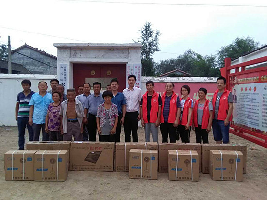 8月23日,开封市“手牵手帮扶中心”五名志愿者来到我校定点扶贫村——开封市祥符区曲兴镇双楼村进行捐赠活动。曲兴镇政府镇长李巍峰及党委副书记李文勇带领双楼村干部参加了捐赠活动。