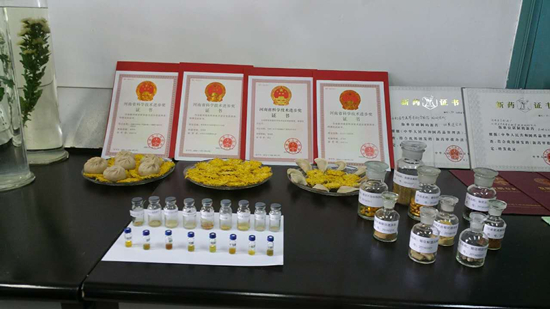 实验室主任、药学院副院长韩光教授带领考察团一行参观了实验室的提取分离、分析测试及药物制剂等研发平台,汇报了开封菊花的研究进展。自2014年8月批准建设以来,实验室开展了开封菊花药食功效物质基础研究及保肝解酒、缓解视疲劳、辅助睡眠、减肥降脂系列保健品的研发。实验室与开封豫鑫农贸有限公司合作的“开封菊花组合物保健产品的开发”成为省级产学研合作试点项目。今年双方又签订了“菊花系列产品的研制”研发协议,首批到账经费80万元,一批成果正陆续转化为产品推向市场。实验室已形成了菊花高效综合利用和系列产品深度研发的科研特色。