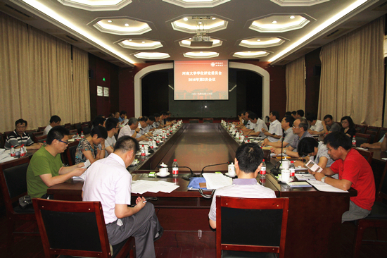 本次会议共有四个议题:一、关于硕士和博士学位申请的相关议题;二、河南大学学位授权点合格评估工作相关议题;三、关于对在河南省2015年学位论文抽检中“存在问题学位论文”的处理决定;四、审议并通过部分学位评定分委员会人员组成调整的报告。