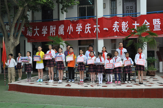 5月31日上午,附小召开庆六一表彰大会,并开展了形式多样的“游园”活动。校团委书记翟新礼出席表彰会并带领全体少先队员呼号。