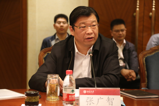 张广智发表讲话,他说,河南大学是河南省重点建设的两所高校之一。2011年,河南省人民政府专门颁布了《百年名校河南大学振兴计划(2011—2020年)》,进一步确立河南大学重点建设、优先发展的战略地位,河南大学的发展正面临着重大的机遇。北京大学作为我国高等教育的最高学府,是国家培养高素质、创造性人才的摇篮、科学研究的重镇、知识创新的基地和国际交流的桥梁。今天,河南大学与北京大学牵手合作,按照“地位平等,优势互补,资源共享,任务共担”的原则,充分发挥各自优势,深入开展黄河文明相关研究,这对于河南高等教育整体科研水平的提升具有重要推动作用。
