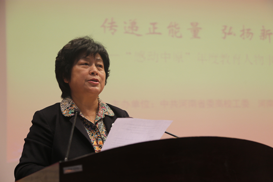 王凌在总结讲话中指出,榜样是力量,典型是旗帜,先进典型是有形的正能量、鲜活的价值观,人人可感可触、可学可为。“感动中原”年度教育人物是我们身边涌现出的做人修身的榜样,是自觉培育和践行社会主义核心价值观的杰出代表,是推进校园道德风尚建设、加强和改进大学生思想政治工作最有说服力、影响力的生动教材。她希望全校各单位和全体师生要以他们为榜样,进一步学习弘扬他们的先进事迹和崇高品质,在全校不断掀起宣传学习教育活动新热潮,努力使“学先进、担道义、守良知、当示范、做榜样”成为广大师生的自觉行动,把社会主义核心价值观内化于心、外化于行,为学校创建高水平大学,为加快中原崛起河南振兴富民强省,为实现中华民族伟大复兴中国梦汇聚起强大正能量。