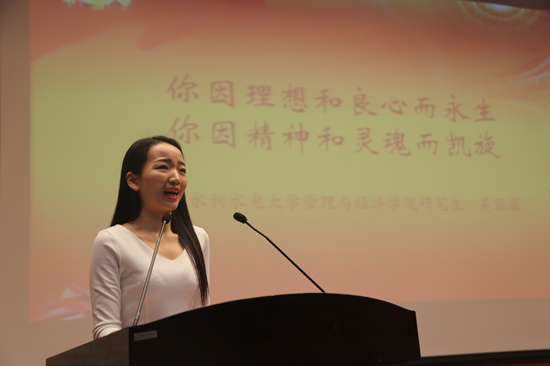 吴菲菲讲述见义勇为、为救落水儿童而不幸牺牲的华北水利水电大学学生孟瑞鹏事迹