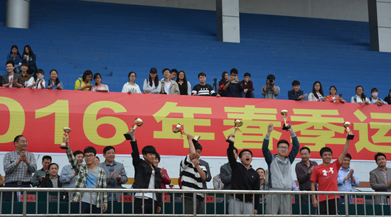 挥汗如雨洒青春活力,拼搏奋进展河大风采。4月15日下午,我校2016年春季运动会于金明校区志义体育场圆满落幕。校党委副书记王凌,校党委常委、副校长刘志军,校党委常委、工会主席朱恒宽,学校有关职能部门和学院的负责人出席闭幕式。闭幕式由校体委副主任、党政办公室主任孙功奇主持。