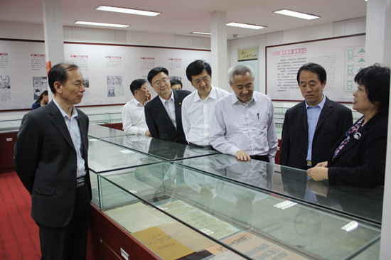 王凌对邵鸿一行的到来表示热烈欢迎,并陪同客人参观了我校明伦校区。在留学欧美预备学校门前,王凌向客人简要介绍了我校悠久的办学历史和优良的办学传统。走进古代科举书院文化展厅,历史学专业背景的邵鸿饶有兴趣地参观了了旧时学生的课艺作业、旧时乡试和会试的试卷等与古代科举、书院文化有关的实物,并提出了自己的见解和建议。在七号楼历史文化学院门前,邵鸿高度赞扬了我校为中国高等教育做出的特殊贡献,并回忆起自己当年在南昌大学工作期间,所使用的教材就是我校朱绍侯先生主编的《中国古代史》,对先后在我校工作过的史学大家如数家珍。邵鸿先生对我校美轮美奂的近代建筑群赞叹不已,更对我校悠久的办学历史和取得的辉煌办学成绩赞不绝口。