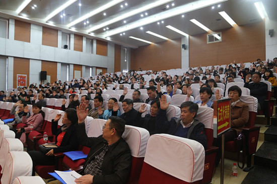 3月26日下午,我校第十七届六次教职工暨工会会员代表大会在金明校区图书馆一楼报告厅闭幕。大会听取了各代表团组讨论情况的汇报,表决通过了校长工作报告、工会工作报告。关爱和、赵国祥、王凌、宋纯鹏、张宝明、刘志军、刘先省、许绍康、雷霆、朱恒宽等主席团成员在主席台就座。闭幕式由校党委副书记王凌主持。