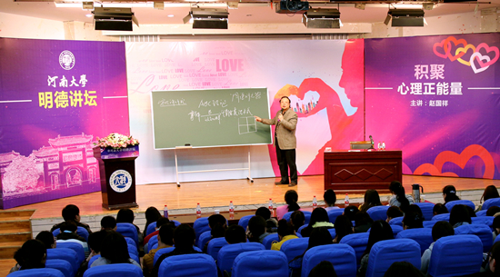 3月24日下午,2016年河南大学首场明德讲坛在明伦校区科技馆二楼报告厅开讲,校党委常委、常务副校长赵国祥应邀与各学院学生代表300余人共聚一堂,分享如何积聚心理正能量,讲坛现场座无虚席,气氛热烈。讲坛由学生工作部部长陈灿主持。