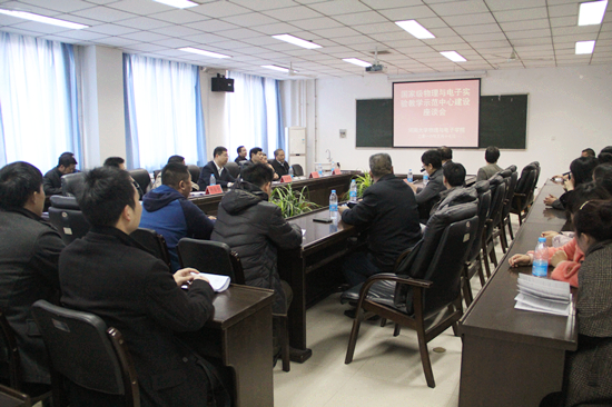3月17日下午,我校国家级物理与电子实验教学示范中心建设座谈会在物理与电子学院三楼会议室举行,标志着该中心建设工作正式启动。校党委常委、常务副校长赵国祥,校党委常委、副校长刘志军,教务处、实验室与设备管理处、物理与电子学院相关负责人及中心有关人员出席会议。会议由物理与电子学院院长顾玉宗主持。