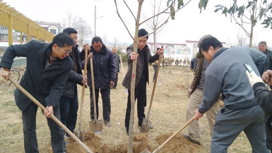 3月12日上午,早春清晨的薄雾尚未消散,空气中还带着些许寒凉。在杞县葛岗镇西空桑村的伊尹文化广场旁,已经聚集了不少手拿铁锹的村民,他们在我校驻村扶贫干部、校后勤服务集团总公司副总经理黄备荒的带领下,同我校师生代表一起在美丽的西空桑种下一片“河大林”。