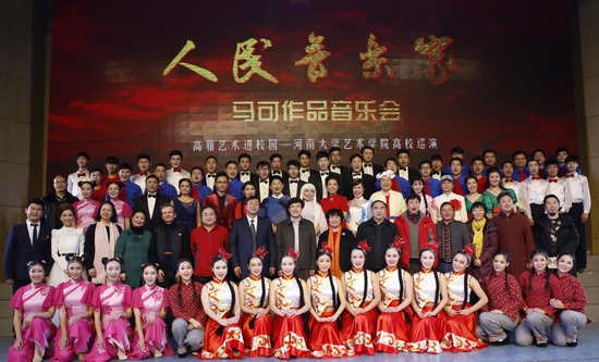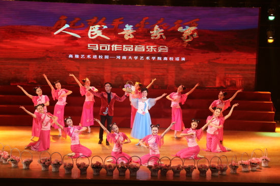 为纪念马可诞辰95周年,我校艺术学院师生通过探讨马可音乐作品的艺术成就,倾力打造了经典马可音乐作品。2013年12月24日,举办了“纪念马可诞辰95周年——人民音乐家马可作品音乐会”,将马可作品再次呈现在母校的舞台。此后,马可作品音乐会又相继在中国社会科学院、中国科学院大学、中国音乐学院等高校精彩“亮相”。2014年,马可作品音乐会被确定为河南省高雅艺术进校园的品牌栏目之一。