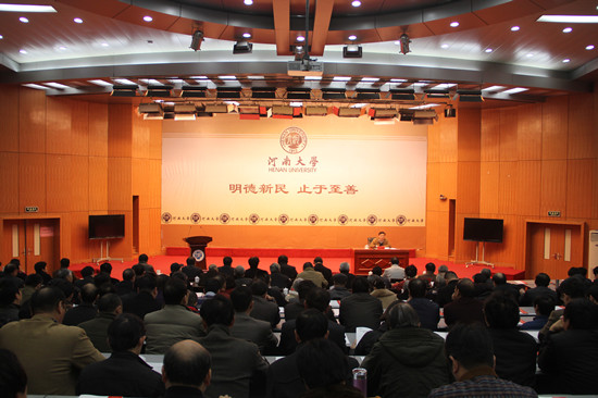 关爱和在主持报告会时就我校学习贯彻党的十八届五中全会精神提出三点要求,一是迅速掀起学习党的十八届五中全会的热潮。把学习贯彻全会精神作为当前的一项重要政治任务,抓紧抓实抓好。党员干部带头学,教职员工深入学,广大学生主动学,结合自身实际,创新方式方法,拓展学习渠道,增强学习效果。二是营造学习贯彻党的十八届五中全会的浓厚气氛。党委宣传部要充分利用校报、宣传栏、校园网、新媒体等舆论宣传阵地,切实做好全会精神的舆论宣传工作。三是紧密联系学校实际贯彻落实党的十八届五中全会精神。全校各单位、各部门一方面要以全会精神为指导,做好学校“十三五”规划编制工作,科学谋划未来五年学校改革发展的重大问题;另一方面,要以更大的勇气和胆略,不断推动学校重点领域和关键环节的改革攻坚,尤其是在一流学科与一流人才队伍建设方面,力争新突破,创造新成果,为推动我校高水平大学建设、实现河南振兴、中原崛起做出新的更大贡献!