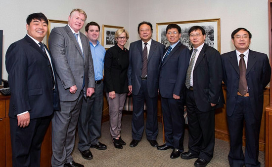 赵国祥(右四)与美国ESU大学校长Marcia Welsh(左四)合影