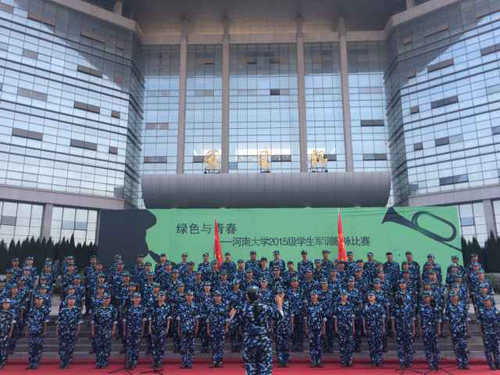 9月16日上午,由校团委筹办的河南大学2015级新生“绿色与青春”军训歌咏比赛落下帷幕。比赛为期两天,分别在明伦校区大礼堂广场和金明校区明德广场举行,共计85支连队参加了比赛。