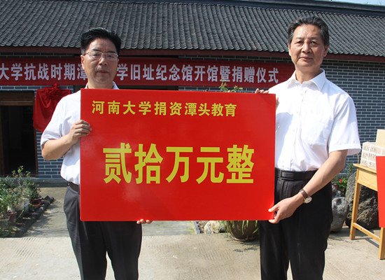 在开馆仪式上,娄源功代表河南大学向潭头教育捐资二十万元,河南大学出版社捐赠图书700余册。仪式结束后,娄源功在采访中表示,“潭头人民曾经在最困难的年代给予河南大学无私的帮助,悠悠岁月,抹不掉河大师生与潭头人民结下的深情厚谊,我们要饮水思源,回报民众。”