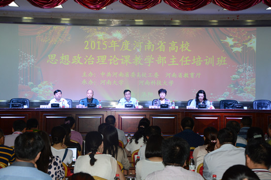 2015年7月29日上午,全省高校思想政治理论课教学部主任培训班开班仪式在洛阳举行。省教育厅思政处处长何秀敏,我校党委副书记王凌,河南科技大学党委副书记李漪、我校党委宣传部有关负责人及全省100余所高校的思想政治理论课教学部主任参加仪式。开班仪式由省教育厅思政处副处长张延华主持,李漪致欢迎辞。