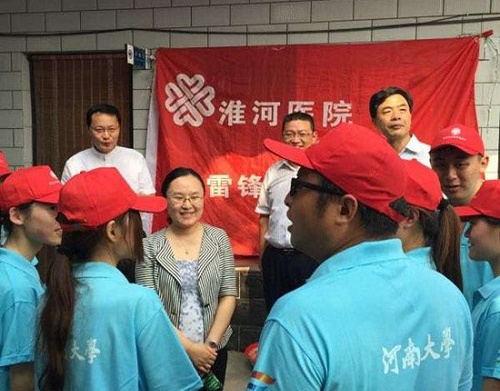 7月14日,共青团河南省委副书记王艺在开封团市委、河南大学团委、淮河临床学院负责人陪同下来到开封市祥符区范村乡,慰问在这里参加“三下乡”暑期社会实践的淮河临床学院的“关爱脑卒中 义诊献爱心”暑期社会实践团队。王艺和青年志愿者们亲切交谈,了解活动开展情况,并对志愿者们深入农村基层一线,为农民群众送健康的行为表示赞扬。